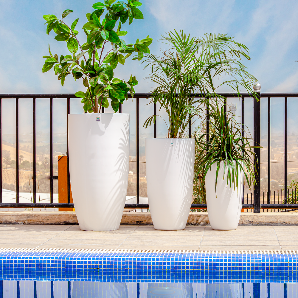 مراكن زراعية اسمنتية عالية الجودة مطلية باللون الأبيض ، يستخدم لزراعة وعناية النباتات ويمكن استخدامه للتزيين الداخلي والخارجي للمنازل والمكاتب وإضفاء لمسة جمالية مميزة ورائعة.