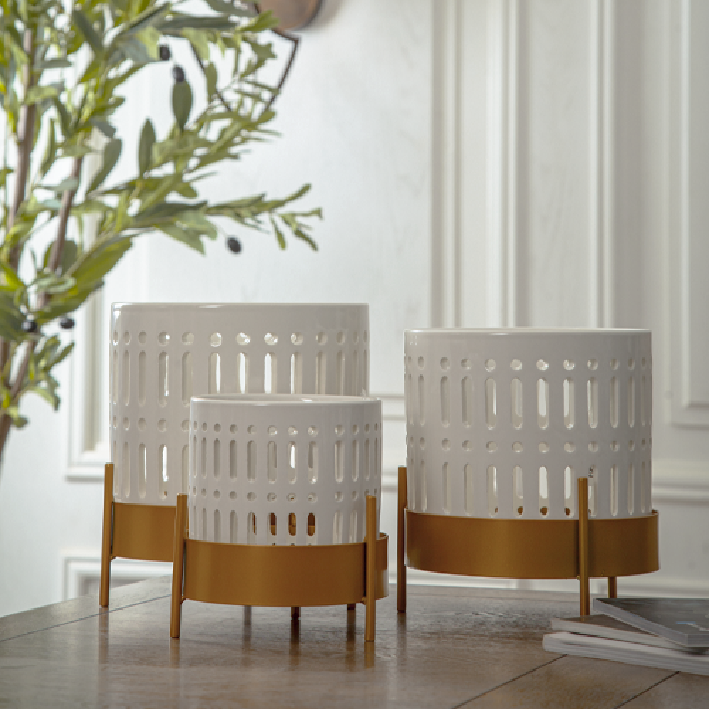 فوانيس كبيره شمعة سيراميك مع قاعدة ذهبية لامعة. لا يقتصر على الإضاءة الدافئة فقط، يضيف جمالية فريدة للمكان.
