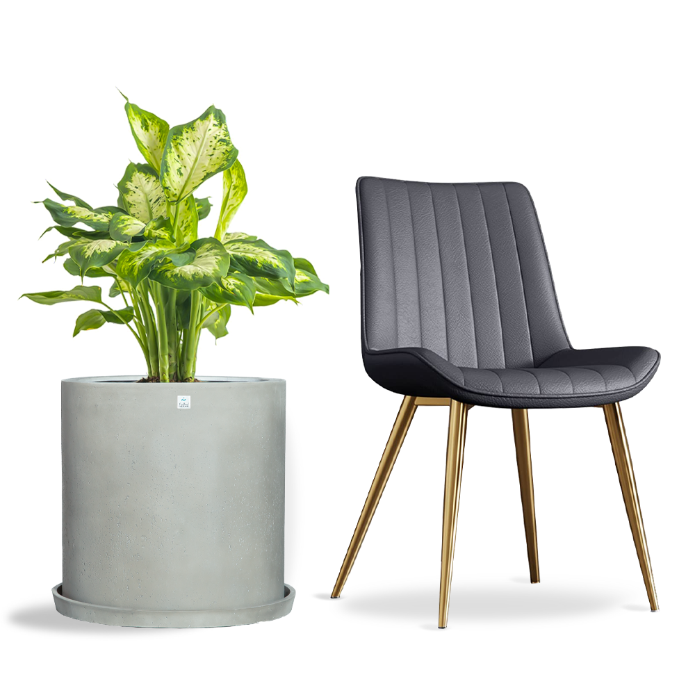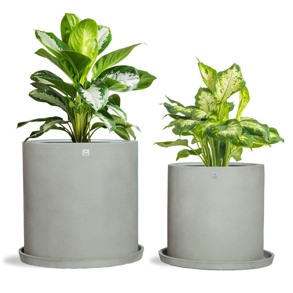 6316مركن دائرى رمادى مع صحن هو إناء زراعة أنيق ومتعدد الاستخدامات، مصنوع من مواد بولي عالية الجودة، ويأتي بلون رمادي عصري يناسب جميع الديكورات المختلفة.