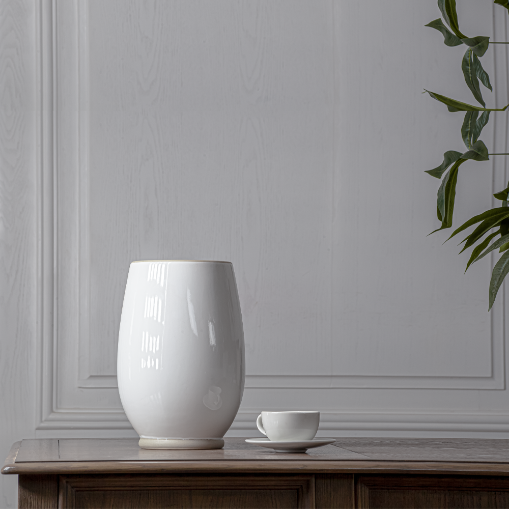 - اصيص زرع ابيض مصنوع من السيراميك المتين وعالي الجودة، مما يضمن استخدامًا طويل الأمد ومتانة فائقة.